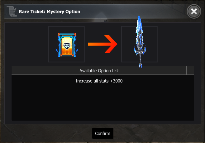 DOES NOTgrant the right to any additional Mystery options, which must be applied using the Mysterious Stone and Mysterious Jewel themselves; - This Rare Ticket