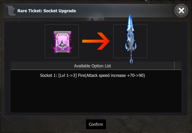 Evolve an item's Socket option slot, always every 2 levels; | Can only be used on items that support the Socket option; |